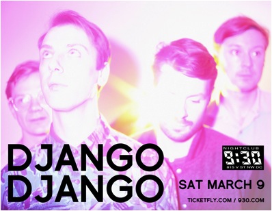 Django DjangoWLOY’s Giveaway of the Week is: Django Django! Not to be confused with the Oscar Nominated film Django Unchained, Django Django is an up-and-coming artist from London coming to the 9:30 Club this Saturday, March 9th. (Last week I said “week” a lot; this week it’s “Django.” Equally commonplace words.)