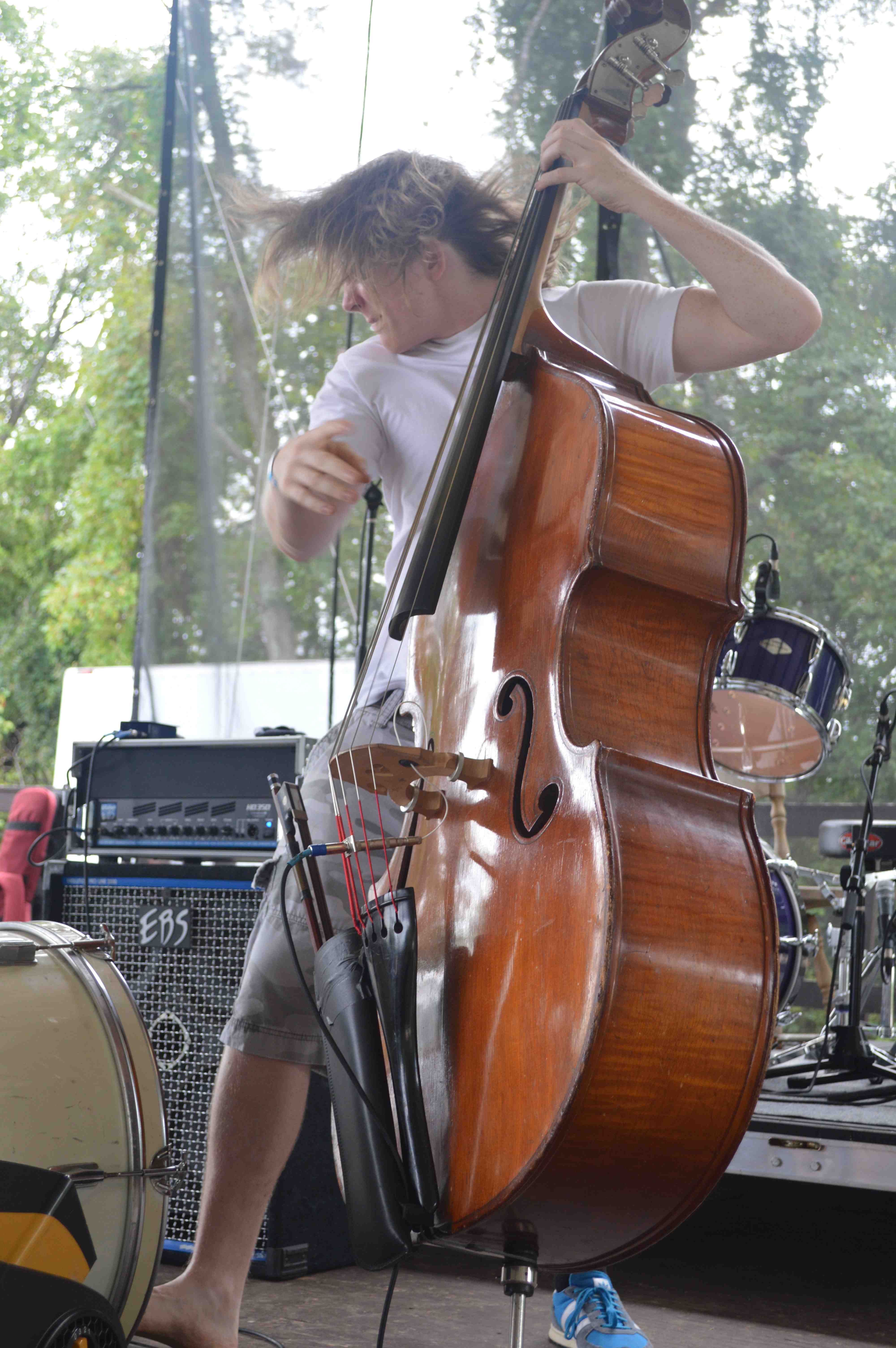 Delivered: Swampcandy.  I can’t lie – I’ve never been a particularly huge fan of Swampcandy’s recordings, nor have I ever been able to accurately put my experience with music into words.  But this show was one of my favorites.  And I think like 99% of the reason has something to do with the fan situated in front of upright bassist Joey Mitchell, blowing air directly into his face and rendering him a tall, unkempt mermaid with flowing blond locks, against a backdrop of overused and under stocked port-a-potties.  It was majestic.