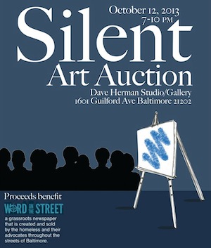 Art enthusiasts all over Baltimore flocked to the Dave Herman Art Studio/Gallery last Saturday for the Word on the Street Art Auction. Word on the Street, a Baltimore newspaper that is managed by those who are either currently experiencing or have experienced homelessness, has been auctioning off art as a means of fundraising for two years now. This most recent auction was a rousing success. The auction took place at the Dave Herman Art Studio/Gallery on 1601 Guilford Avenue in downtown Baltimore. The studio is the home and work place of Dave Herman who was generous enough to donate his time and space to Word on the Street.